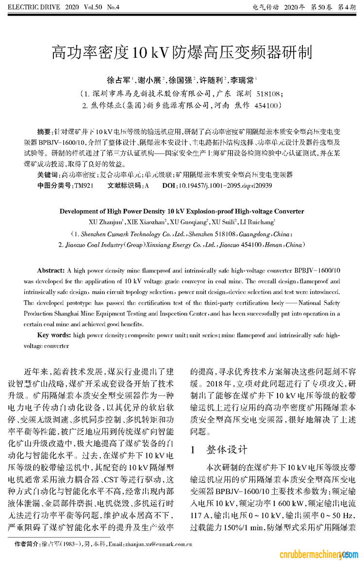 高功率密度10 kV防爆高壓變頻器研制